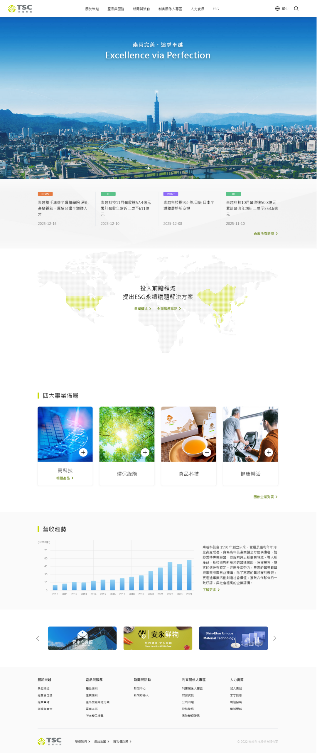 透過沉穩的深藍配色與大氣的視覺構圖,精準傳遞出半導體供應鏈領導者的專業權威與穩定感;網站採用模組化的資訊架構,將跨足多領域的複雜業務與永續發展(ESG)資訊轉化為簡潔、易讀的導覽系統,在視覺上成功平衡了高科技產業的嚴謹度與全球化企業的品牌深度。